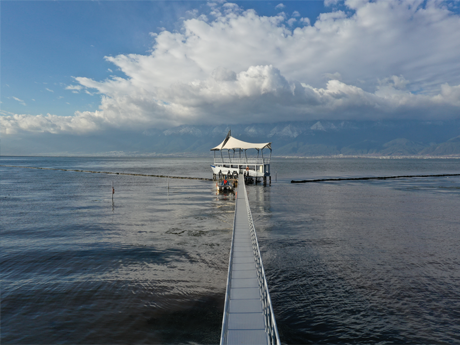 采用高效可調(diào)式渦井取藻、藍(lán)藻囊團(tuán)破壁、一體化二級(jí)強(qiáng)化氣浮等核心技術(shù),岸上站點(diǎn)藻水分離系統(tǒng)集成了藍(lán)藻打撈、脫氣沉降、氣浮分離、脫水等多個(gè)環(huán)節(jié)的技術(shù)和設(shè)備,形成了可規(guī)模化和工廠(chǎng)化處理藍(lán)藻的基站。適用于藍(lán)藻水華長(zhǎng)期規(guī)律性、大范圍聚集區(qū)域的常態(tài)化應(yīng)急處置。